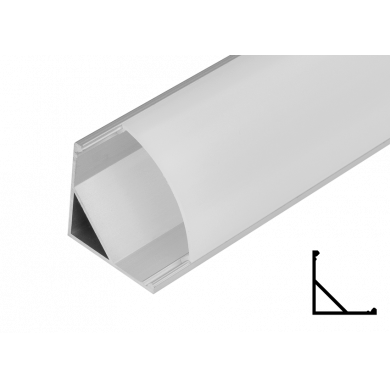Aluminium profile for LED flexible strip, angular, large for surface mounting The aluminium profiles are suitable for LED strips with different width. The aluminium profiles provide a better heat dissipation for the strip and protects it from external impact, thus prolonging its exploitation period. The different profiles and their diffusers distribute the light differently, making them an excellent interior (and exterior) decorative solution. The profile is suitable for strips up to 20 mm wide. The set included: an aluminium profile (2 m), a polycarbonate diffuser, 2 pcs. mounting brackets and 2 pcs. end caps. The mounting brackets and the end caps are also available for sale as separate products.