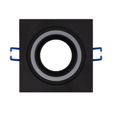 Fixed square ceiling downlight frame for building-in of PAR16 spotlights with max. power not exceeding 50W, black, designed for ceiling mounting with following characteristics: Elegant design. Decorative-ambient illuminated ring. Offered with GU10 socket. Quick and easy mounting with a metal bracket, placed on the back of the frame. The frames are designed for PAR16 spotlights with maximum power up to 50W. Option for choice of the luminous source (power, colour temperature, beam angle). The frames are fixed (stationary). Made of powder-coated aluminum cast. Ingress protection rate is IP20. Suitable for use in dining rooms, bedrooms, living rooms, as well as restaurants, offices, and hotels. You could combine with UltraLux LED spotlights, offered on our website.