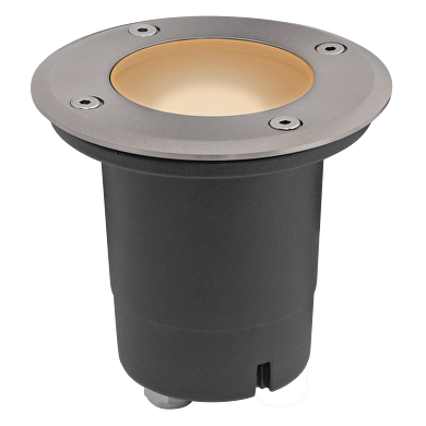 GLFGU10 is a lighting fixture for inground installation with GU10 socket for LED spotlights. It is comprised of mounting console, made of ABS plastic and cylindric aluminium base. The diffuser is made of tempered glass. Silicone sealings and a coupler ensure an ingress protection rate IP65. The ring and the rivets that remain on the surface are made of stainless-steel SAE 304 (inox). It is a lighting fixture for inground installation with GU10 socket for LED spotlights. It is comprised of mounting console, made of ABS plastic and cylindric aluminium base. The diffuser is made of tempered glass. Silicone sealings and a coupler ensure an ingress protection rate IP65. The ring and the rivets that remain on the surface are made of stainless-steel SAE 304 (inox).