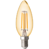 LED lamp, flame type, with 4W power, Amber (2500K) (warm light, smoked glass) for decorative lighting. The light source is a filament diode. This technology allows achieving exceptionally high efficiency – over 85 lm/W. The lamps have a maximum angle of luminance 360° for achieving an even light distribution. The filament diodes have a distinguishing longer exploitation period. The lamp is equipped with high-tech driver, built with excellent components – a sure guarantee for reliable operation. LED Filament lamps are a suitable replacement of the incandescent lamps. They are used mainly as indoor and decorative lighting. Their dimming option makes them a good choice for hotels, restaurants and general lighting.