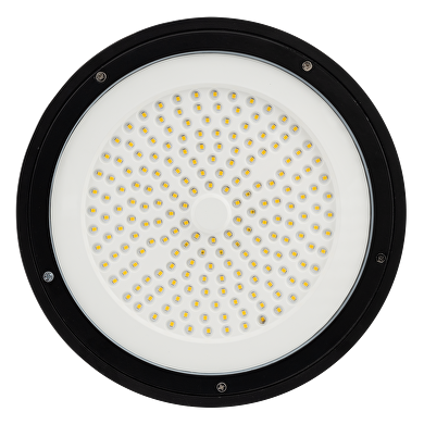 UltraLux New line of LED industrial lamps “highbay” type, with inbuilt DOB with the following advantages: Integrated protection against surge peaks up to 4 kV. Latest generation of inbuilt DOB (Driver-on-Board), where the elements are placed on the circuit board – a reliable and long lasting technology. High efficiency – up to 110 m/W. Special reflector distributes the light in narrow 90° angle. Protective tempered glass and special sealings create an IP65 ingress protection rate – the lamp is suitable for both interior and exterior lighting. The tempered glass has great impact resistance. Breakage is unlikely, but should it occur, the glass would shatter in very small pieces, minimizing eventual harming. Powder coated aluminium housing, ensuring corrosion resistance and mechanical strength. High impact resistance index IK06. SLIM design and lightweight housing. Warranty – 3 years. High power factor PF>0.9. High colour rendering index Ra≥80. Stainless steel hook – the lamp uses suspension mounting. The lamp is an excellent solution for warehouses, industrial areas, parking lots, working sites, etc.