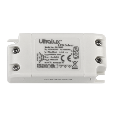 The driver has 600 mA constant output current. It is used as a power supply for LED luminaries with a 600 mA supply current and 3-5 V DC max. supply voltage. The driver is non-dimmable and has all the required EMC filters. Make sure the driver is not covered and have space around it for good heat desipation!